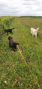 Pension type familiale mais avec l'assurance d'un professionnel. Balades en groupe dans les vignes et terrain de 2 hectares clôturés pour se défouler.